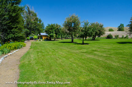 scene for a fairytale wedding. Say your vows in our meadowlike apple orchard, bordered by the Lemhi River. Let the mystical creek that flows through the middle of the property serenade your guests while you dance the night away under the stars. Huckleberry Hollow boasts a large pond, two bridges and an elegant outdoor beauty becoming the perfect prelude to your happily ever after.